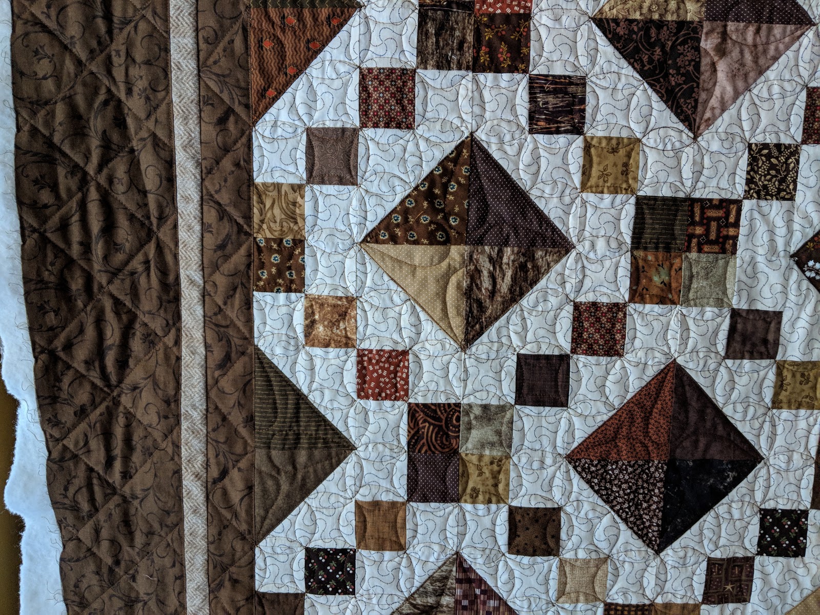 - Finding an accurate 1/4" seam without pieces twisting at the end of the sewing sentence. ( I had to use the far right needle position for the 1/4 inch... but then it would veer off at the end of triangle pieces.)