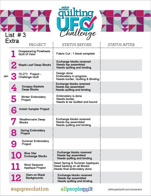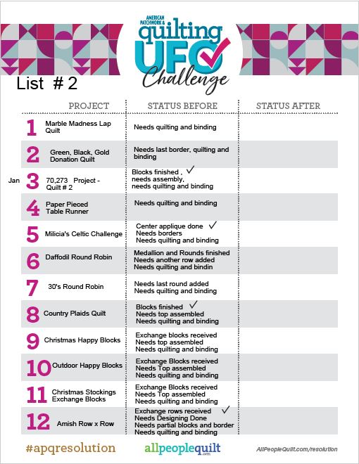 Here is my List for that challenge: The number for this January is # 3. My second 70,273 quilt.