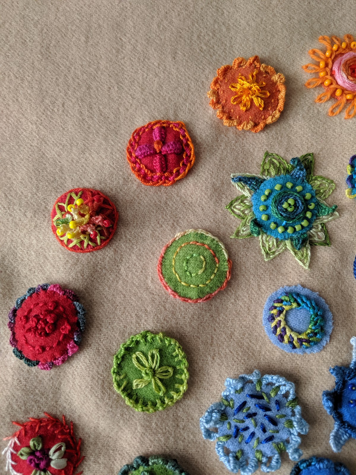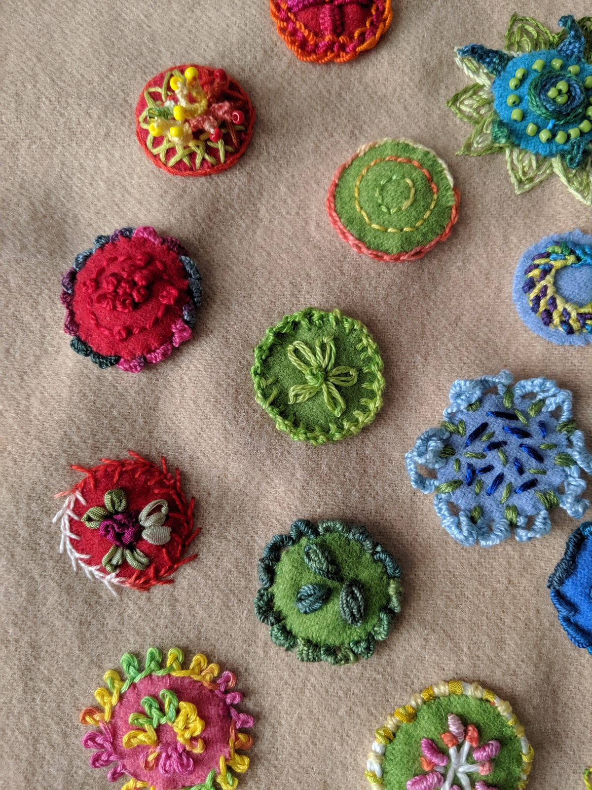 I had done some wool work prior, but it had been applique with basic buttonhole stitching. All the different textures and effects from threads and stitches is addicting!