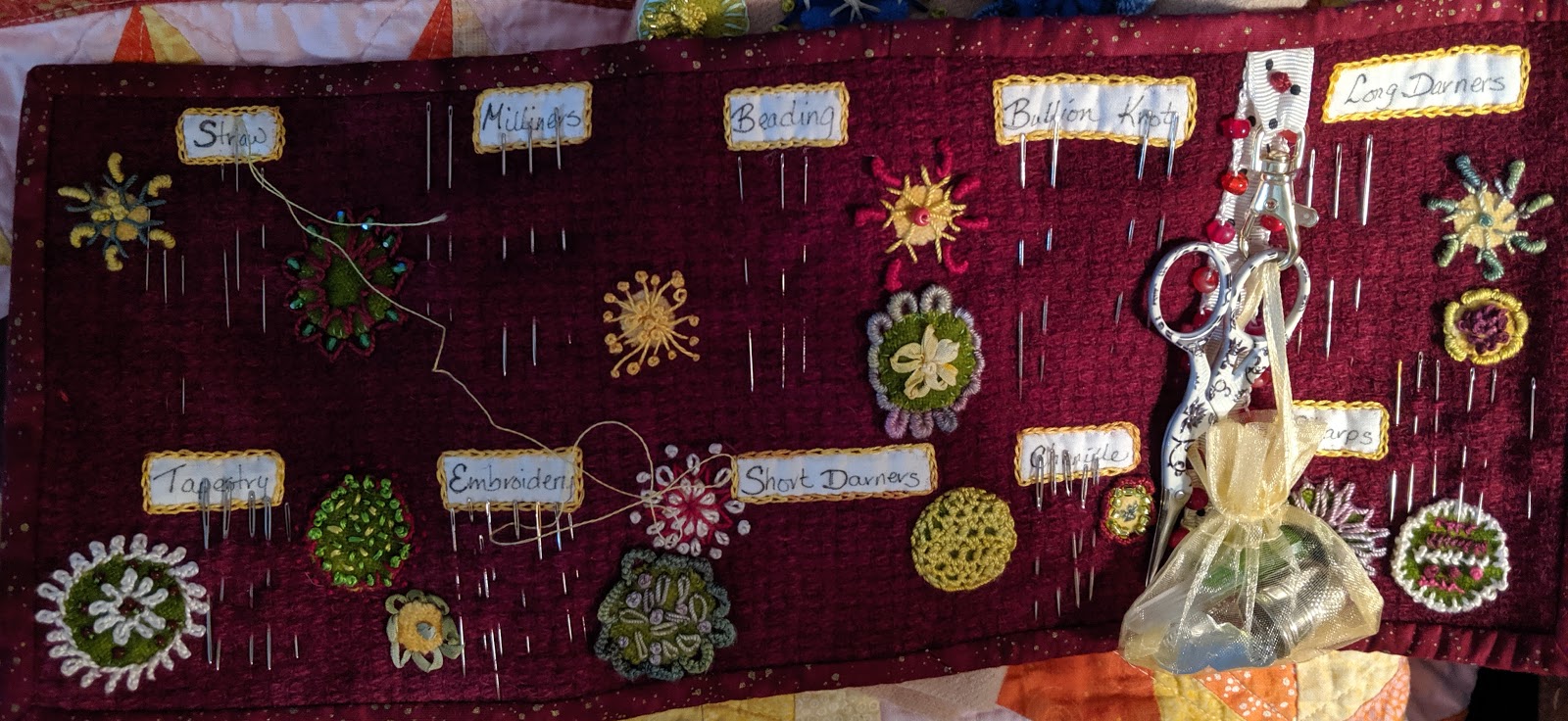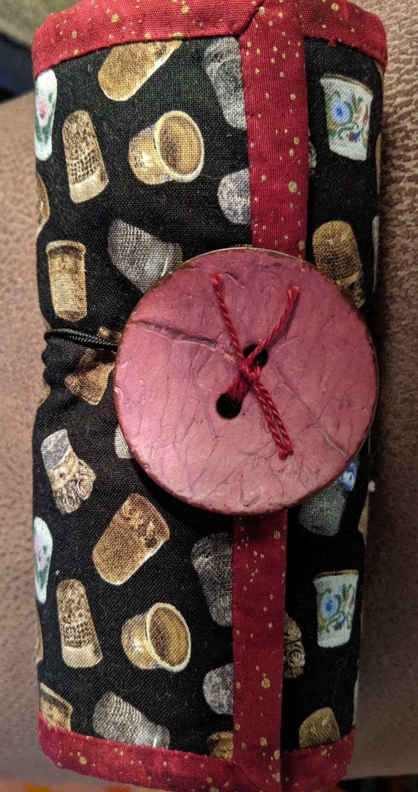 With all this stitching, I need a needle roll, correct? This is Sue Spargo's pattern. I made my own labels. This was a fun project.