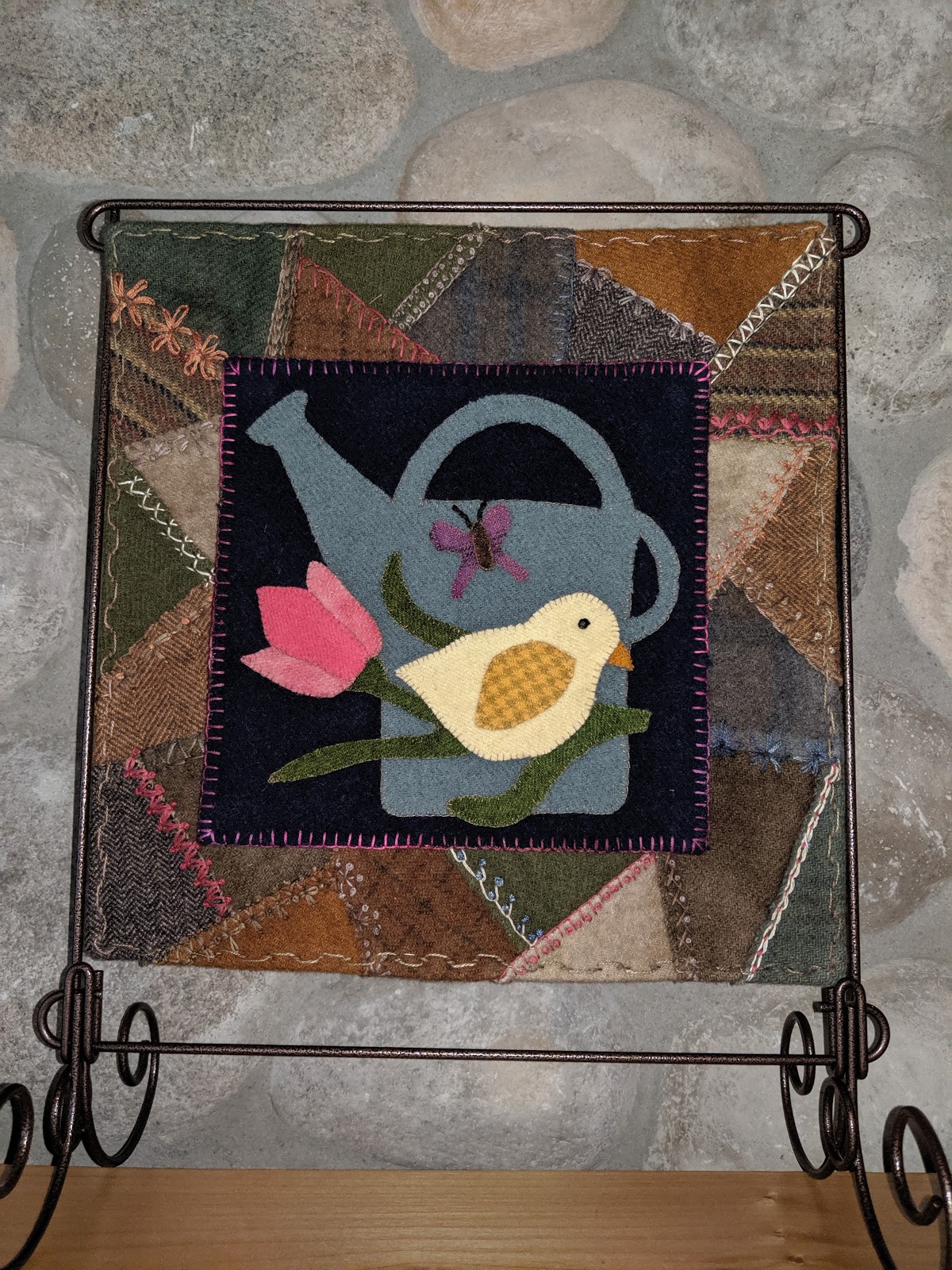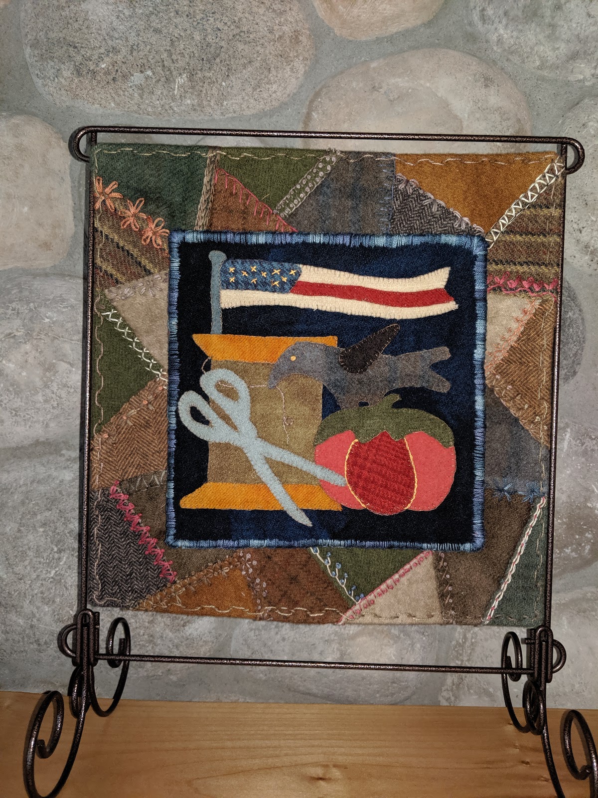 I also finished a long term project in wool that is a seasonal project. Pattern is by Buttermilk Basin and was a Block of the month. Knowing just how bad I am at changing seasonal items here at home, I opted to do Seasons, rather than Months. I did a lot of this stitching in the car while traveling. Wool is so forgiving.