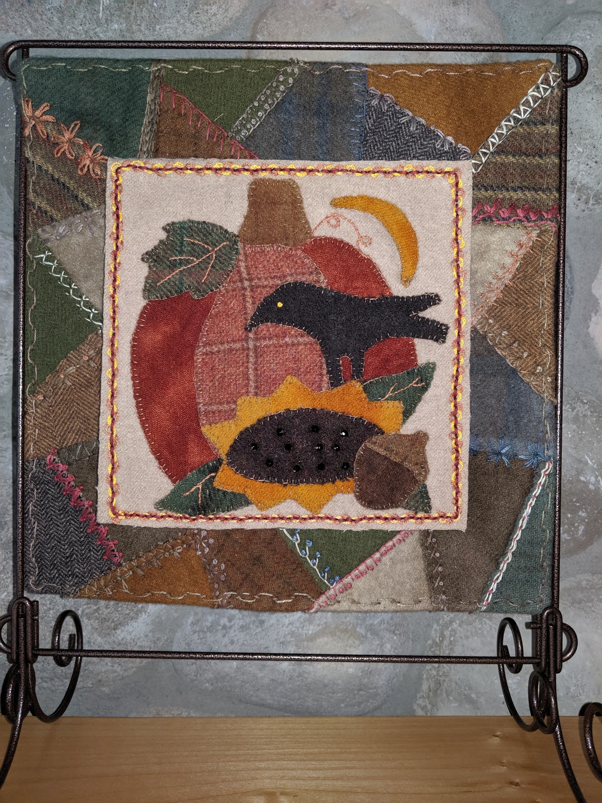 Seasons in Wool - background crazy patch block - 12" x 12" |