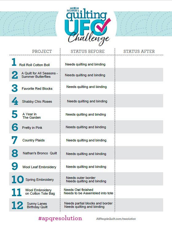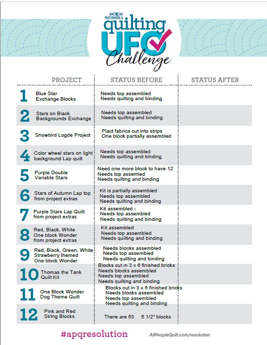 Once again, I'm participating in the APQ Facebook challenge. I think I'll just stick with one challenge, but I have 3 lists... so when a number is chosen each month, I'll attempt to work on all three lists for that number... we'll see how it goes!
