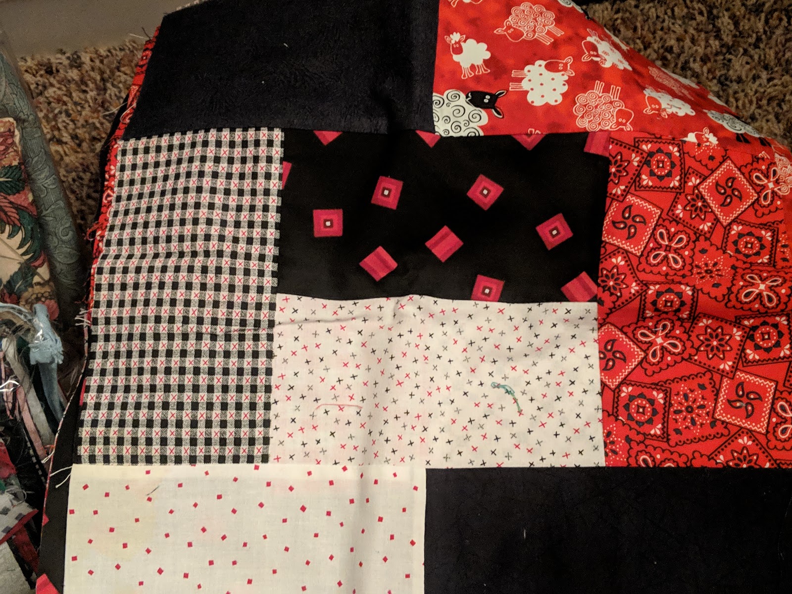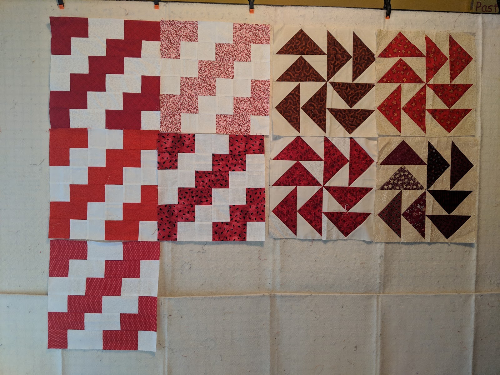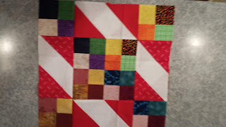 In 2016, an internet group i belong to did a birthday block swap. We each picked a block and a colorway, and each member sent the birthday girl a block for their birthday. I chose the block, "Sunny Lanes" in red and scrappy. I need some more blocks, which I will need to make to get it to the size I want.