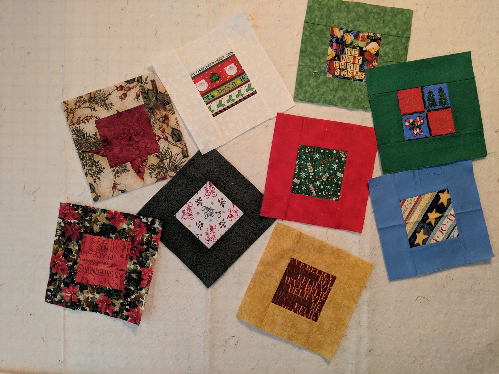 An internet forum, Block Central, did a monthly exchange of these fun little blocks. Each month was a different theme. I won the Christmas blocks in 2009. I have 20 blocks total, with just one of them being blue.