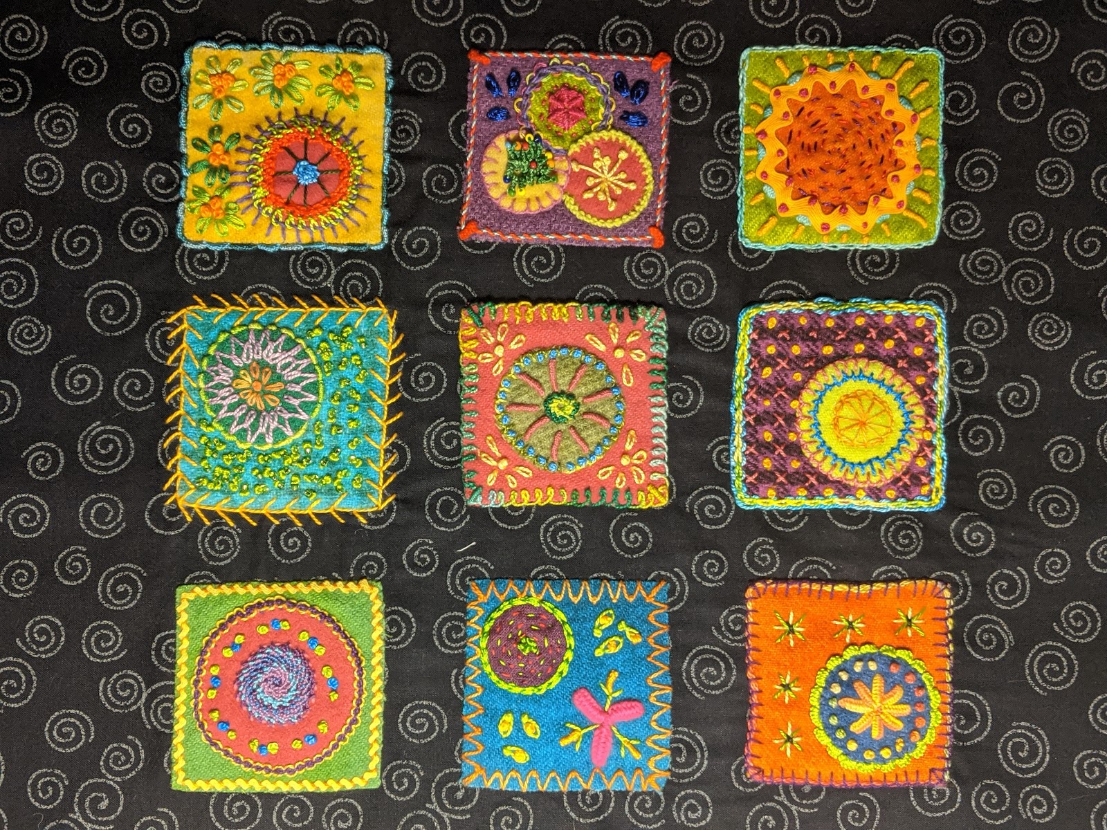 I started this little embroidery on Wool project during a class Fall of 2019. Wool goes so quickly, and it's like potato chips... you get addicted and can't put it down! this one is ready for quilting and binding.