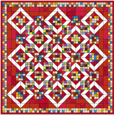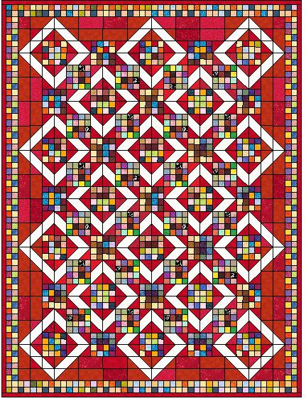 Originally, Bonnie had planned for this to be queen size... but I had to cut it down to a size I gift or use.... A twin size throw.... the extra pieces were put to use in a bonus quilt that I finished in 2012.