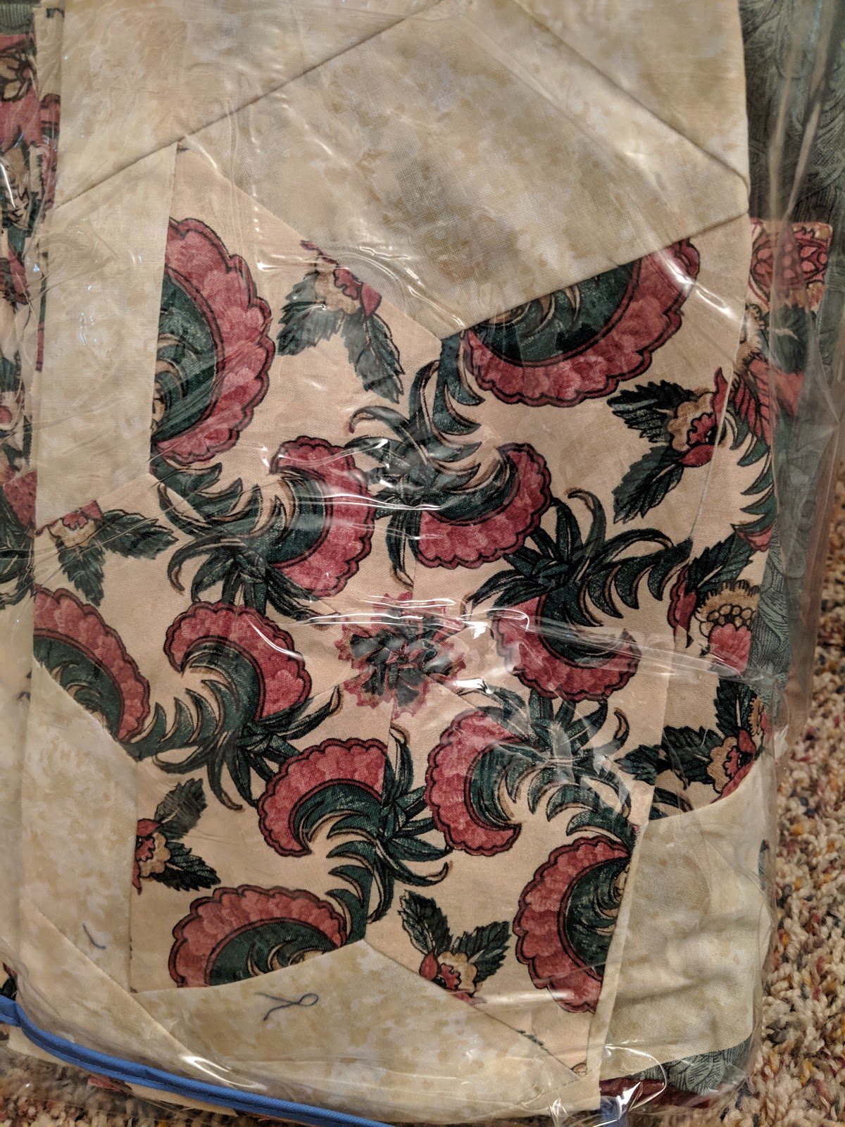 I did not work on this in February... I was working on Quilt Show Prep, but with the Co-Vid 19 Stay home orders, I had time to finish the quilting, sleeve and facing in March.