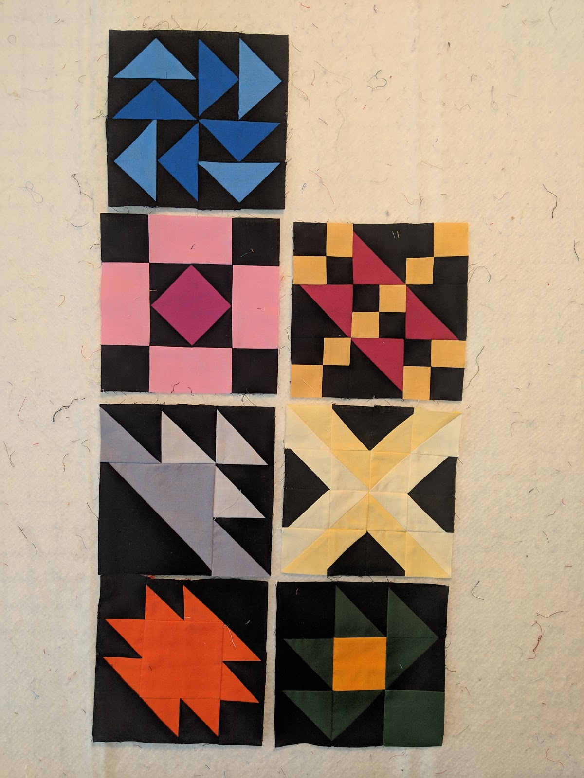 These were blocks won at our guild's BOM lotto. there are only 4 of them, but I will make a lap quilt out of them for donation.